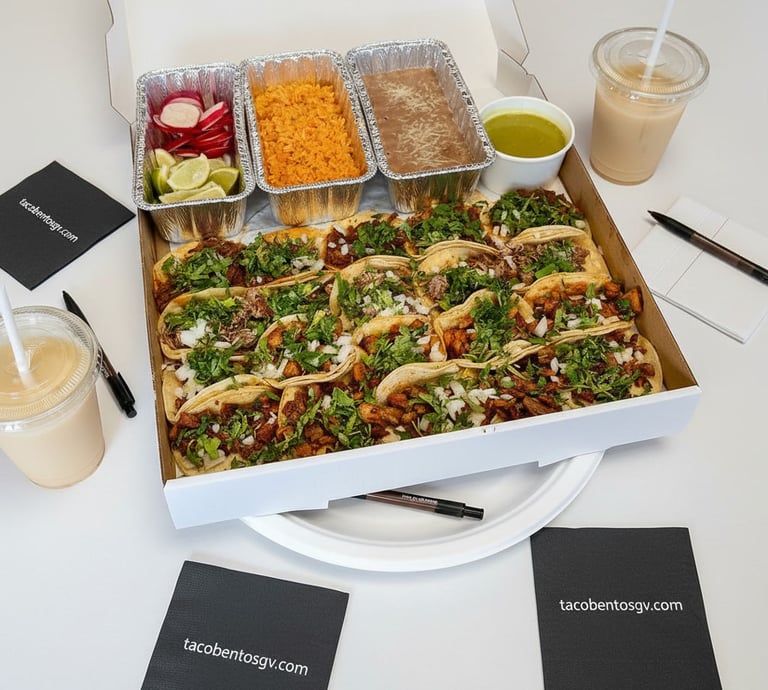 For regular catering orders, team lunches, and smaller meetings, Taco Bento catering is available directly through DoorDash.